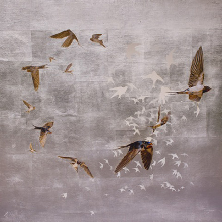 I am strongly influenced by spiritual and religious paintings which is why I use gold and silver leaf. It was used extensively throughout the Middle Ages in early Christian iconography where it lends a brilliance and spiritual dimension to a painting that is not possible any other way. The mirror-like reflection on the paint surface changes as the viewer walks round the painting, adding an extra element of interaction with the viewer. The paintings come alive particularly at night in a candlelit room throwing back the viewers presence with wonderful flickering highlights.” Diana Armstrong