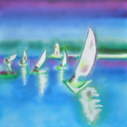 Crofts’ work is continually evolving, and in 2012 she took her unique brand of art using thermography to a higher level, by photographing elite athletes in several sporting disciplines. These included Olympic Champions Steve Williams OBE and Mark Hunter MBE, who were portrayed during her residency at Leander Boat Club in Henley on Thames. She then transcribed these images onto canvas using acrylic paint to reflect power, talent and determination.