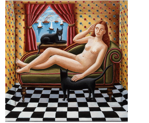 P.J. CROOK From a studio opposite her house, she manages compositions on a monumental scale - paintings can measure 2 x 4.5 metres and also paints small pictures, some no larger than 10 cm square. She works in tinted gesso, acrylic and sometimes in oil on canvas, or on a corrugated wood support, which gives a three dimensional effect to her work, as does her practice of incorporating the frame within the composition. A recurring theme within her work is crowd interaction. Some of these paintings have been used as covers for King Crimson's recent albums. Alain Coudert writing in Arts Actualities Magazine, Paris says of her work: "The world according to P. J. Crook is full of individuals losing their identities in a crowd, where they are packed tightly like sardines in a tin. But this is not sad, it is merely a symptom of an age which tends to walk on its head." |