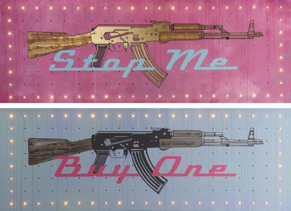 Mike Lake McMillian and Alan Stuart pasts are clouded in mystery. There is talk of one being a fashion photographer, or a magazine editor, or a graphic designer or mechanize designer to the stars. Those are the few I can print. Whatever the truth, it's the now that counts. Back stories are for the theatre! Their work is playful and witty, while challenging the viewer to reconsider their world view. The duo take a measure of Pop Art, a soupçon of Post Modernism, spice things up with their obvious anarchic Punk sensibilities, shake it all up in a neon factory in a scrap yard, and create works that are perfect for our fast paced, social media driven, image obsessed world. They grab you on first look, but then you go deeper. At first it looks like it's just a pretty face, then you realize that this is the real thing. This stuff matters.