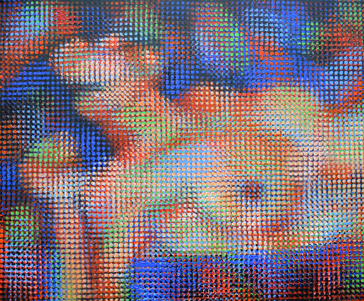 In my paintings I reflect on the nature of reality as perceived through the filter of omnipresent displays and screens in our lives. TVs, cameras, smartphones, they all aid and blur our vision at the same time. They do so by revealing otherwise unnoticed detail, or by screening out the context of observed objects. We are almost constantly exposed to representations of reality, the pixelated "reality" which substitutes the immediate reality of the here and now. The depth is only skin-deep if we start to think of it in terms of patterns of colours used to cheat our eyes and brains into thinking that we have captured the full picture of reality. Nowadays we can see many instances of technology progressing towards art. In my work I try to capture the interplay between the art and technology from the position of traditional painting rather than from the position of technology. I see it as a mirror of traditional technique turned against the mirror of technology itself reflecting traditional technique in the first place. My paintings use strictly only the Red Green Blue colour spectrum which in fact forms the base of all computerized images of reality.