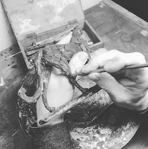Wax is poured into the mould (hence lost wax process) to form a new positive of the sculpt this time in wax. The wax is then cleaned and thoroughly checked by me before the foundry takes over the process.
