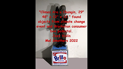 "I'm thinking mass consumerism with the Brillo Box and its effect on global climate change with the found objects," Ariel Zaccheo, Curator, March 2022.