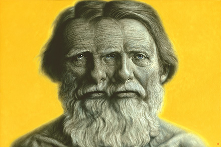 "I have created and developed a brush hatching technique using acrylic and Japanese sumi ink. This was initially inspired by the classic method of "disegno", based on drawing, established in Florentine school in Renaissance. Technically I have enhanced the concept by combining it with the latest neurological studies, which reveal that the human visual brain perceives objects by oriented lines predominantly. This evidence might show the difference between painting and letters, long hidden in the prehistoric age. In my practice, I attempt to gather the threads of "narrative" in creating textures of the ever-changing present moment, embodying semiotic images of our time." - Hideyuki Sobue