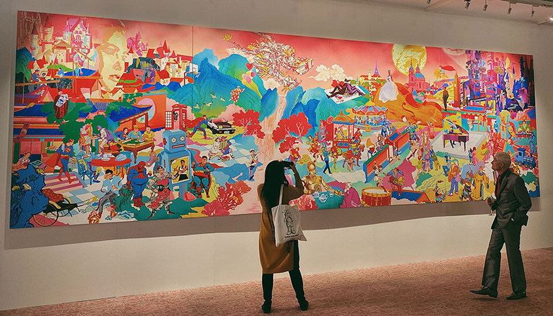 Christie’s Art+Tech Summit is an annual one-day conference and part of an ongoing initiative to spark dialogue about the role and potential impact of emerging technologies in the art world. Jacky was invited as a guest speaker for the panel talk Breathing Life into the Surface to discuss his new paiting Parody of Jay’s Music. Through augmented reality (AR), Jacky along with visual artist and director of Future Power Station Yibi Hu and Co-Founder & COO of The Parallel Alexander Padhaiski, added life to the 8-metre painting. Supported by the famous Mandopop singer and art collector Jay Chou, the artwork took Tsai a year to complete. The painting is inspired by the singer's 20 years of music career.