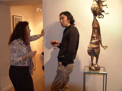 Dashi's pieces of art have already become a synonym for contemporary ethnic ritual sculpture. Fulfilled mostly in realistic manner, they are at the same time significantly hyperbolic. Perfect plasticity and exalted emotionality of his 'warriors' and 'guardians' have made their creator a classic of modern sculpture.The variety of materials Dashi works with is impressive: bronze, silver, gold, mammoth tusk, horsehair. The works 'Full Moon' and 'Raven' are a genre mixture of sculpture and tapestry and have no precedent in recent art history. In Dashi's sculpture one can find traditional images of Central Asia steppe civilization - warriors and beauties, lamas and shamans, totemic animals and mythological creatures. In 2003 Dashi was awarded the Silver Medal of the Russian Academy of Arts. The exhibition held at Tibet House in New York earlier this year gained the artist a worldwide fame. The Hay Hill Gallery is located at 11B Hay Hill, Mayfair, W1. The exhibition is open Monday to Friday 11.00 to 18.00, and Saturday from 11.00 to 17.00. Photo Report from the Reception of 16 November 2004 |
