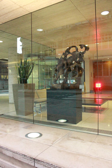 Meets New at 100 Leman Street Hay Hill Gallery is proud to present in co-operation with ARTful Ltd the sculptures of Andrew Cheese at 100 Leman Street. This beautiful glass fronted building is an ideal home for these striking works, a perfect combination of clean lines against rustic patinations. Despite its reputation as a modern business location, Leman Street is shrouded in mystery, hiding an underground ‘ghost’ station which was bricked up in 1941, never to reopen. Just a short walk from the DLR at Tower Hamlets tube station, Leman Street is now easily accessible to visitors to the exhibition. Unafraid to experiment with his work, Andy Cheese often uses a broad range of materials, including stone, resin, wood, steel and plaster. Taking the human figure as a starting point, he plays with the idea of revealing undercurrents of energy inherent within the static. His detailed studies into the movement of everything from dancers to kinetic machines, have led him to produce iconic sculptures such as the works on display at Leman Street: ‘Breaking Through The Wall Of Words’ is a dynamic bronze portrait cast from old printing press letters; ‘Energy’ is a man wound tightly out of copper ribbons springing forward, or falling back; the abstract ‘Movement’ is a sprinter in a race or dancers balancing.In association with Hay Hill Gallery, the sculptures will be on show at 100 Leman Street until the beginning of July 2014.Featured Artist: Andy Cheese |