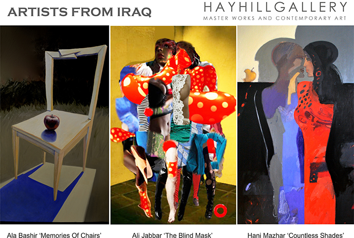 Hani Mazhar, Ali Jabbar and Ala Bashir are Iraqi artists who live in the UK. In different ways they have experienced some of the upheavals in their country, most notably Ala Bashir, who was intimately caught up in Saddam Hussein's regime, not least as the dictator's physician when he was also the country's leading plastic surgeon as well as, arguably, its leading artist. The location is a stylish gallery on Baker Street and the ground level space is particularly open with lots of natural light. The large downstairs room was used to exhibit Hani Mazhar and Ali Jabbar and while they differ, their paintings differ markedly from Ala Bashir's in being full of mostly representational shapes and very colourful, whereas Bashir's are austere and directly focused on, usually, a single object, a chair. A few of Mazhar's works reference Iraq (obviously, "Baghdad" and the triptych, "Lament for Mesopotamia") but, more often they are conceptual but within a figurative style. Ali Jabbar seems to go out of his way not to be anchored, though "I Don't Belong to any World" is just one work that gestures towards a loss of identity. Ala Bashir's theme of chairs is - like some of the objects - twisted and twisted again to wring out the meanings of this ubiquitous piece of furniture. Some cannot but evoke torture and pain, notably "Blue Shirt", and one wonders what horrors the artist/surgeon witnessed up to 2003. However, these works from 2010 onwards are at more of a distance from the truly frightening works from earlier in his distinguished career. What comes across is that whereas chairs have often been distorted in modern art, to the point that one cannot imagine being able to sit upon them or only in a dream, the distortion in Bashir's chairs, whether they are twisted in on themselves or fuse into a human body or body parts, points to an internal struggle within some of the chairs. As a commercial gallery, the Hay Hill hasn't produced a catalogue of the exhibition, though there is a one-page handout on each artist, as well as a price-list.