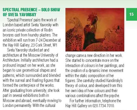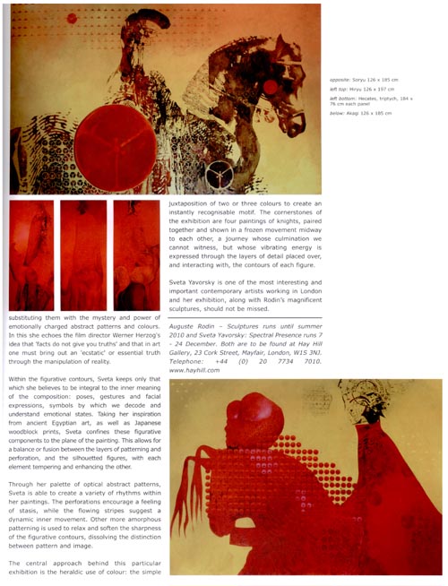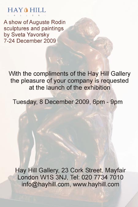 Auguste Rodin - Sculptures runs until summer 2010 and Sveta Yavorsky: Spectral Presence runs 7 - 24 December. Both are to be found at Hay Hill Gallery, 23 Cork Street, Mayfair, London, W1S 3NJ. Telephone: +44 (0) 20 7734 7010, www.hayhill.com