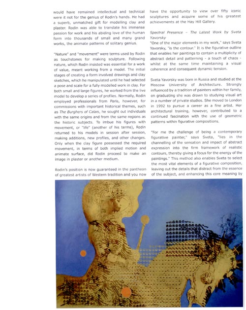 Sveta Yavorsky is one of the most interesting and important contemporary artists working in London and her exhibition, along with Rodin's magnificent sculptures, should not be missed.