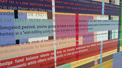 With so much driving PE activity over the last decade – not least the pension fund liability gap – across an ever-increasing array of industrial sectors and geographies, Art as a Derivative VI – Private Equity focuses on this pivotal sector in a series of themed verbatim-text paintings.