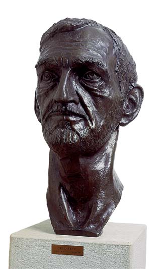“I created this large portrait from a live model. An old Russian sailor with a most interesting face who, with his weather-beaten leathery skin and short stubbly beard, looked strikingly similar to the old Cuban fisherman who inspired Hemingway to write his Nobel Prize-winning novel: ‘The Old Man and the Sea'. Accordingly, I named the sculpture ‘OLD SALT .”