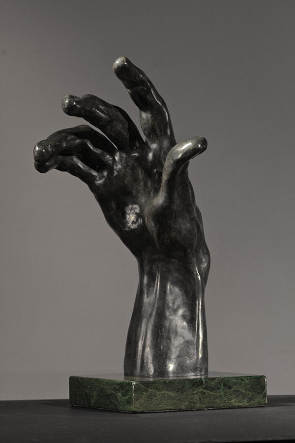 The hand is oversized for the proportions of the figure, a distortion in keeping with Rodin's accentuation of the most important features of his burghers, their hands and heads.