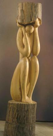 In 1970-1980s Silis worked a lot with wood, creating not only statues but also reliefs. Especially remarkable among these pieces is a three-figure composition "Morning. Day. Evening". This piece compellingly reveals the sculptor's reverential attitude to the material and the subject. The female figures appear as both earthly and otherworldly; the abstract ovals of faces, necks drawn out as sprouts, brittle hands and the whiteness of the bodies stand in sharp contrast to the dark, rough tree bark. What did the sculptor want to say with this? Probably he wanted to highlight the enigma nestled within every female soul, this soul's primary natural grace and purity.