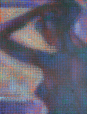 In my paintings I reflect on the nature of reality as perceived through the filter of omnipresent displays and screens in our lives. TVs, cameras, smartphones, they all aid and blur our vision at the same time. They do so by revealing otherwise unnoticed detail, or by screening out the context of observed objects. We are almost constantly exposed to representations of reality, the pixelated "reality" which substitutes the immediate reality of the here and now. The depth is only skin-deep if we start to think of it in terms of patterns of colours used to cheat our eyes and brains into thinking that we have captured the full picture of reality. Nowadays we can see many instances of technology progressing towards art. In my work I try to capture the interplay between the art and technology from the position of traditional painting rather than from the position of technology. I see it as a mirror of traditional technique turned against the mirror of technology itself reflecting traditional technique in the first place. My paintings use strictly only the Red Green Blue colour spectrum which in fact forms the base of all computerized images of reality.