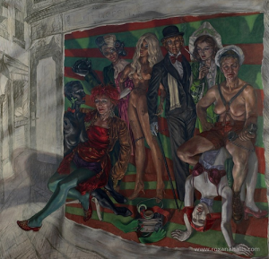 Let’s meet Roxana Halls, English painter, winner of the prestigious Villiers David prize in 2004, and charmed by the Berlin cabaret. In this interview she talks about her project Roxana Halls’ Tingle-Tangle, that was exhibited at the Royal National Theatre, South Bank, London in 2009.
