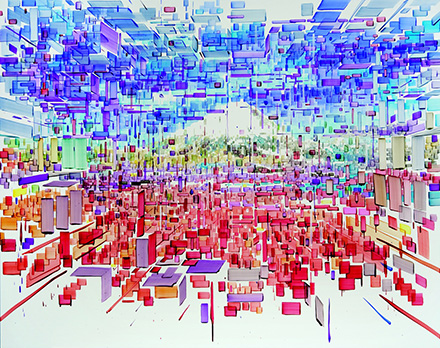 Although the first phase of the artist’s work was devoted to hyperrealism, his technique has now developed into a more spontaneous style. The paintings evolve through techniques of dripping paint and are enriched by unusual colours and resins. The series is entitled ‘Paintings Decoded’, using the metaphor of language.