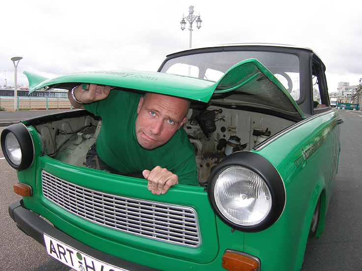 Jamie turned this vehicle into a moving artwork for the UK's first Art Car Parade in 2007. It was awarded the top prize for the most environmentally friendly car. He converted an old East German Trabant, famous for being the most polluting car ever, into a pedal-powered vehicle to create the least polluting car ever. In the 50th anniversary year of the Trabant, the intention was to highlight the problems facing us with increasing vehicle numbers. Using humour to attract attention to the issue is typical of Jamie’s methods to get the public’s attention without beating them up with a message. With this piece he wants them to consider the impact of cars on our environment, our health and our future.