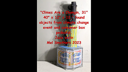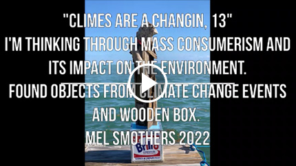 "I'm thinking mass consumerism with the Brillo Box and its effect on global climate change with the found objects," Ariel Zaccheo, Curator, March 2022.