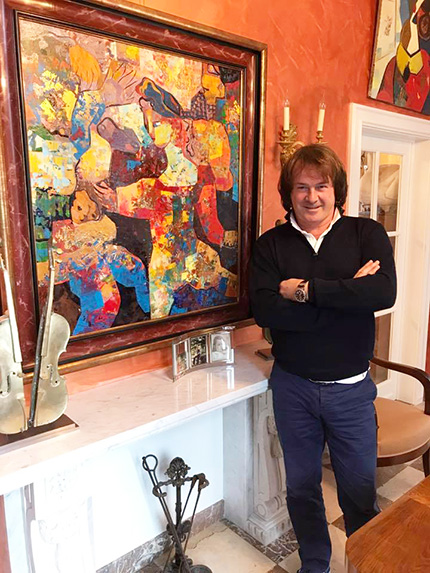 Taming the Chaos Igor Tcholaria calls his artistic method “retro-perspective” (not to be confused with retrospective). In essence, this means that he moves forward in his creative work from the depths of time, mastery and tradition. Like an athlete who steps back to take a running start before jumping. The kinetic energy of this running start can be extremely great. All that remains is to land on one’s feet. Tcholaria feels confident in his flights, even on the quaky ground of contemporary art. He’s resolutely prepared to weed its tangled thickets, accustomed like a true knight to his palette-knife sword and Cubist-form armour. And fairly recently (stepping back to the Bronze Age for his running start?) he turned to what was a new genre for him: bronze sculpture. Combining a classic approach with the vivid forms of sensual improvisations, he managed in a single stroke to create a whole line of original sculptures that have already won popularity in Europe. Tcholaria was born in the town of Ochamchira, Abkhazia, on the Black Sea coast. He received his initial training at the Sukhumi School of Art, where talented pedagogues taught him the basics of the craft and instilled in him a love for painting. Then he continued his education in Leningrad, at the Vera Mukhina School and Academy of Fine Arts. His work is largely influenced by the French Impressionists along with Pablo Picasso, Amedeo Modigliani and Paul Gauguin. Interacting with each other in the artist’s internal crucible, their creative methods were synthesized into a new quality that became the signature Tcholaria style. In addition, he’s spent years experimenting with the texture of the paint layer, striving for a powerful matte finish instead of glossy garishness. During his student years the works of old European masters had an enormous influence on Tcholaria, who spent much time studying and copying them in the State Hermitage and the Old Russian Paintings Department of the Russian Museum. At the same time, he led the life of a typical informal artist, with all the delights and travails of a semi-underground existence. In the mid-1980s Tcholaria was one of the first to begin earning a living drawing portraits of passersby on the street. At that time in the Soviet Union this occupation was not entirely without risk. Once an observant policeman caught him at work in the square in front of Kazan Cathedral. But the vigilant artist noticed the danger in time. Quickly throwing his brushes into his painter’s case, Tcholaria left the girl he was painting to pose in loneliness and disappeared into the cathedral’s colonnade. The law-enforcement officer wandered among the massive columns for a long time to no avail: you can’t catch artists in a maze, for they feel the rhythms of lines better than others. This feeling of rhythm is a manifestation of Tcholaria’s subtle musicality. Whether calibrating combinations of warm and cool tones, like Cézanne, or painting a broken line with a vibrating hand, like Modigliani, the maestro remains invariably himself. He’s on a first-name basis with these great names, whose ghosts quietly hover over his canvases like spirits in a spiritualist séance. Tcholaria’s female portraits are worthy of special mention. His heroines are funny, mysterious, sly and reckless. At times exotic in an Oriental way. At times colourful and monumental. Clearly, the artist does not always require live models. Images constantly flicker through his soul, like evening fireflies in a Black Sea park. Though Tcholaria often deals with the circus theme, he doesn’t depict scenes in the ring; instead, his attention is drawn to the individual characters. Looking at his paintings, one feels the metaphysical longing of Picasso’s harlequins and at the same time their attempt to escape its grip. The artist seems to soothe his protagonists: “You’re colourful and clever. What do you have to be sad about?” One of his works is entitled Look at Me, Look at Me. A harlequin suddenly flies onto the scene and freezes in mid-air. Like a dolphin jumping out of the water. Or a sail floating over the ocean’s surface. Contrasting icily with the dancer are the melancholy girl present in the image and a blue surrealistic figure in the background. This is like counterpoint in music, when a contrasting tonality emphasizes the beauty of the main theme. No wonder the artist repeatedly admits that he prefers working mainly to classical music. He’s especially inspired by Antonio Vivaldi and Johann Sebastian Bach. For Tcholaria, the idea of taming chaos, which he creates on the canvas using an original technique of abstract underpainting, functions as a sort of generator of striking and unpredictable compositions. At first the artist doesn’t restrain his energy in any way. But at a certain moment he suddenly “chokes his own melody” and gazes at the composition like an ancient shepherd at the starry sky, in which not only Big and Little Dippers appear as if on an abstract canvas, but also wild rams, hunting dogs and other phantoms of the imagination. For all its apparent simplicity, this method requires an ideal sense of colour, outstanding plastic abilities and a highly developed intuition, which allow the artist to discern a metaphysical element in random combinations of coloured patches. When Tcholaria first found himself in Europe, it was just this method of spontaneous insight that allowed him to astonish the European public. Throughout the ensuing years the artist developed and improved his trademark technique. Working in this manner, he never knows exactly how the final result will look. And this is the most important thing in art. Surprise yourself, and you’re sure to surprise the viewer. Even God, according to the Bible, couldn’t hide His amazement after creating the Earth. Once Tcholaria became the involuntary coauthor of a hot trend in the fashion industry. John Galliano acquired one of Igor’s painting