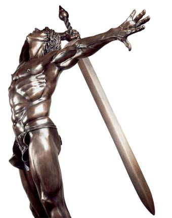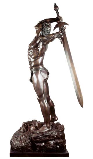 This sculpture is identical to the Life-Size nude David, except that a loincloth has been added, and the surface is made smooth in the style of the Renaissance Old Masters. For those who prefer David to be covered, the sculptor has created a second series of the same sculpture, where David is wearing a brief loincloth. THE SCULPTOR WILL NOT ALLOW A FIG LEAF TO BE PLACED ON HIS WORK.