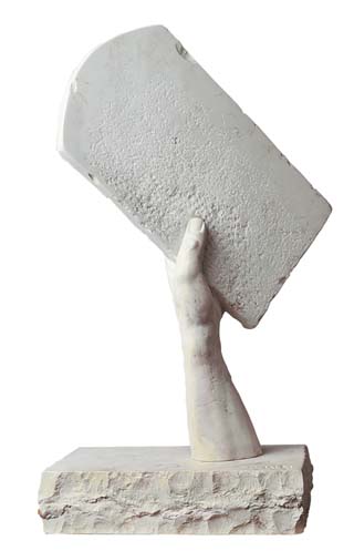out of stone the perfect hand of God holding a Commandment Tablet. The hand