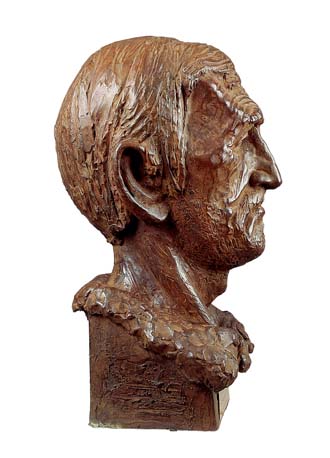 rust brown patina adds to the craggy lines of this remarkable likeness.