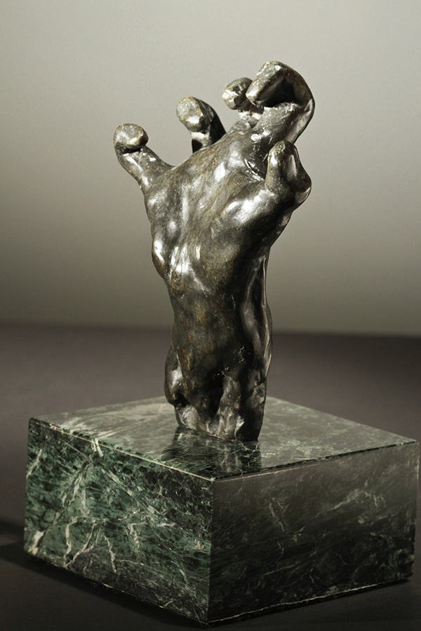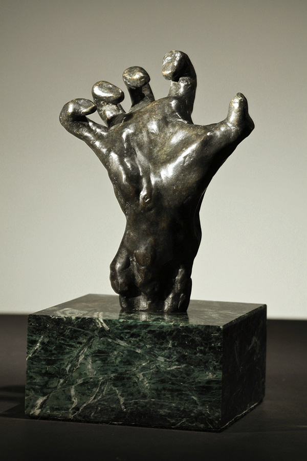 AUGUSTE RODIN Clenched Hand Bronze (small), 13.5 x 10.8 x 7 cm, originally conceived 1906 Bronze (large), 35 x 17.6 x 12 cm, originally conceived 1906