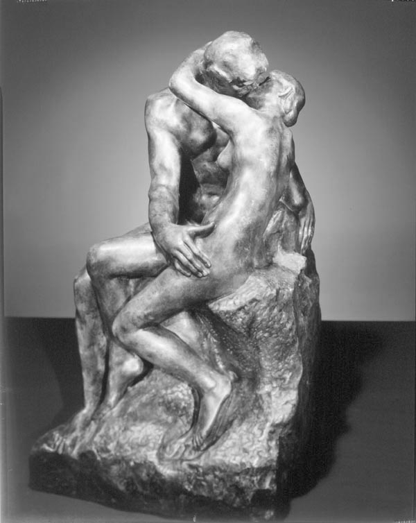 From Clodion in the eighteenth century and his followers such as Bartélémy-François Chardigny to Rodin’s contemporaries, the subject of the Kiss elicited frivolous, cloying responses. Alone among the sculptors of the period, Rodin restored to the subject dignity and monumentality. He also gave The Kiss historical weight by including the "slung-leg" motif, familiar from antiquity in images of erotic love. Of the sculptures celebrating physical love, The Kiss is the most perfect and most finely detailed.
